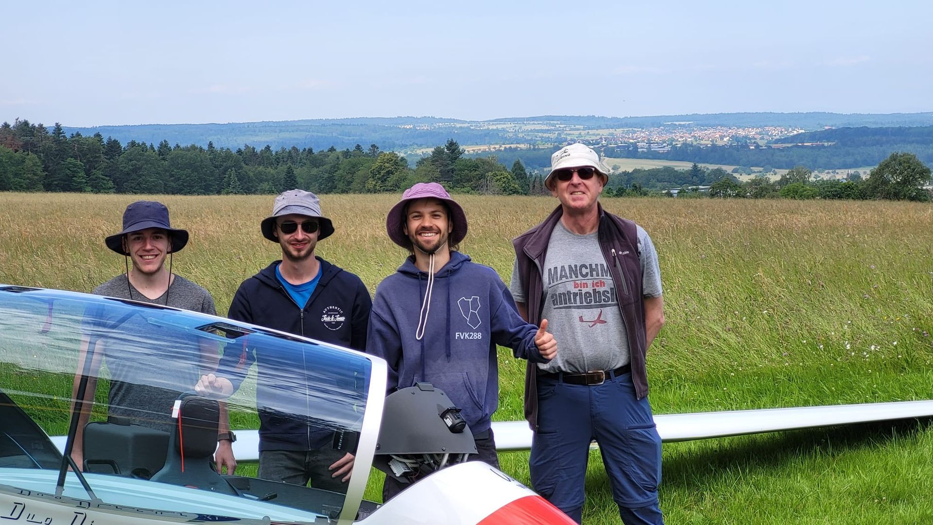 Einen separaten Rückholer hatten wir nicht für unseren Wandersegelflug. Da wir zu dritt waren, haben wir uns immer abgewechselt und jeder von uns ist jeden dritten Tag am Boden mit dem Anhänger hinterhergefahren. Wir konnten wetterbedingt an sechs von neun Tagen fliegen, jeder von uns also an vier Tagen. Besonders schön war, dass sich ein Fluglehrer aus unserem Verein (Matthias Sautter) relativ spontan entschieden hat, uns mit seinem Ventus 2 cxM zu begleiten.